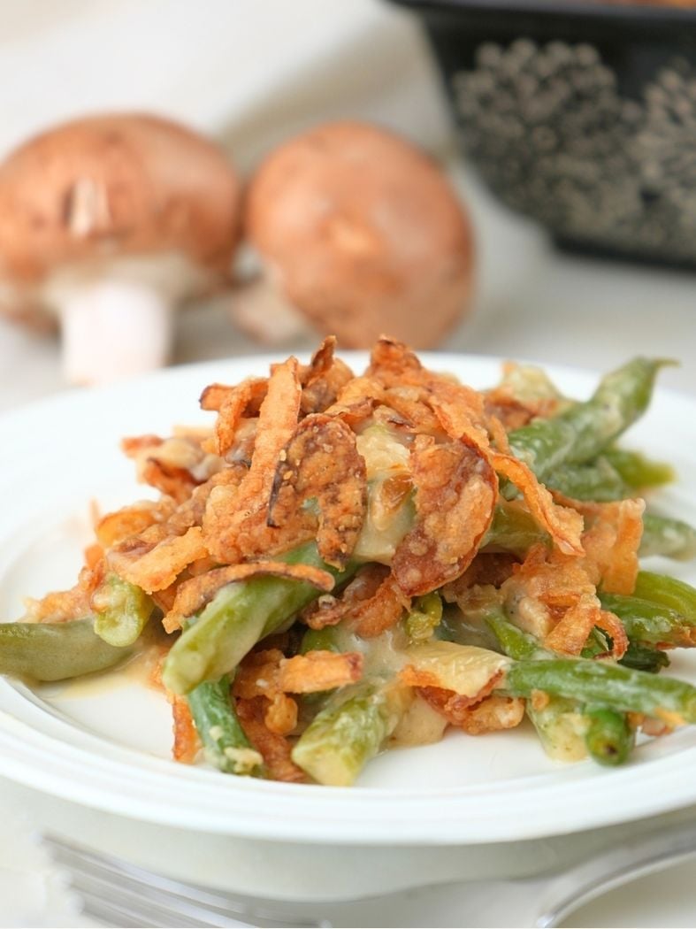 This homemade green bean casserole is a traditional dish on my family’s holiday menu.