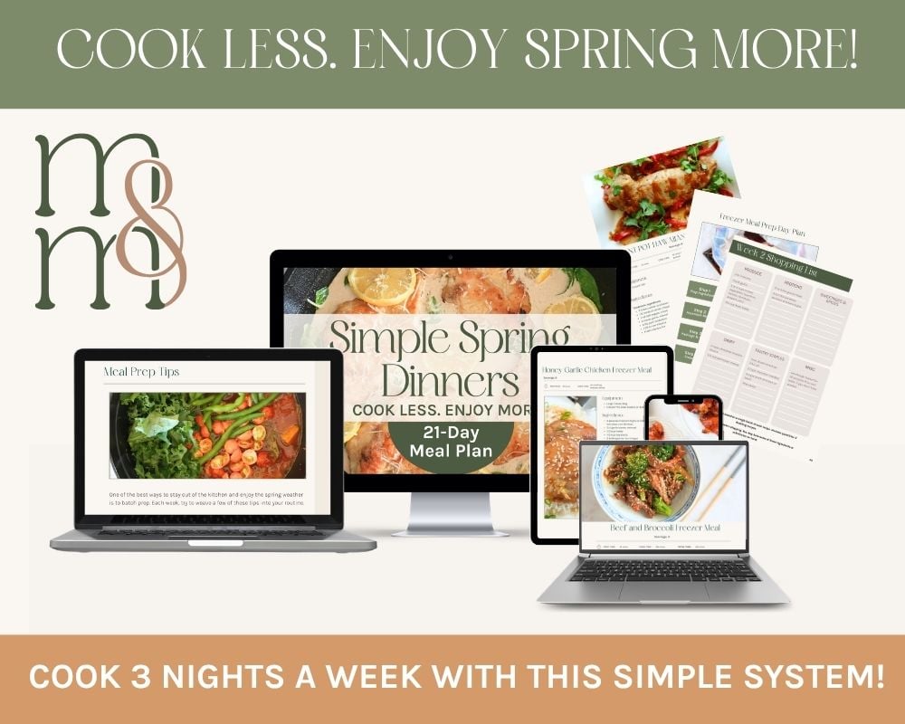Cook less, enjoy spring more! With a balanced mix of fresh dinners, make-ahead meals, and intentional leftovers, you'll spend less time in the kitchen and more time enjoying your days.