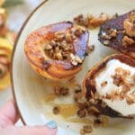 Drizzle the pears with a little more honey or homemade molasses syrup and serve warm with a heaping scoop of vanilla ice cream and a beautiful oat crumble garnish. For a healthier option, serve with Greek yogurt and oat crumble.